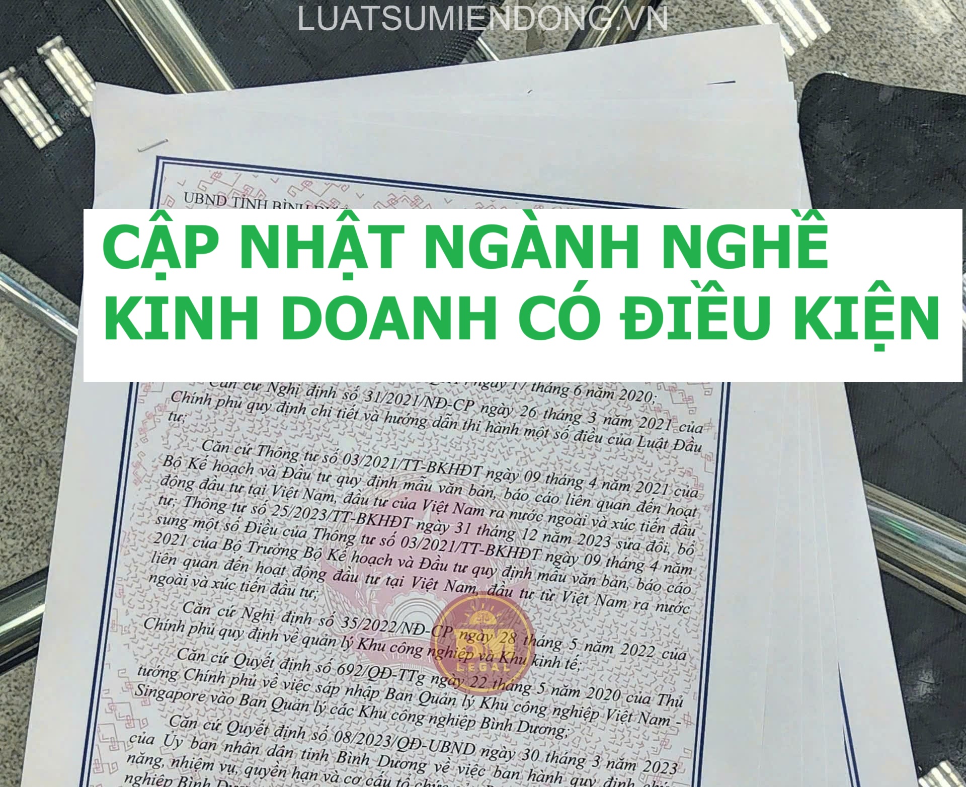 Cập nhật ngành nghề kinh doanh có điều kiện theo Luật Đầu tư 2014, được cập nhật sử đổi bổ sung bởi Luật Bảo vệ môi trường 2020, Luật Nhà ở 2023, Luật Tài nguyên nước 2023, Luật đất đai 2024, Luật số 57/2024 sửa đổi bổ sung Luật đầu tư, …